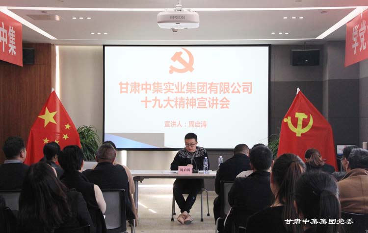 11月23日下午,甘肅中集實業集團有限公司黨委在公司黨建活動室開展黨的十九大精神專題教育活動,公司黨委書記、董事長周啟濤代表集團公司黨委,以《深入學習黨的十九大精神,建設美好幸福新蘭州》為主題,向公司全體黨員、入黨積極分子、集團公司各版塊及各部門負責人宣講黨的十九大精神。