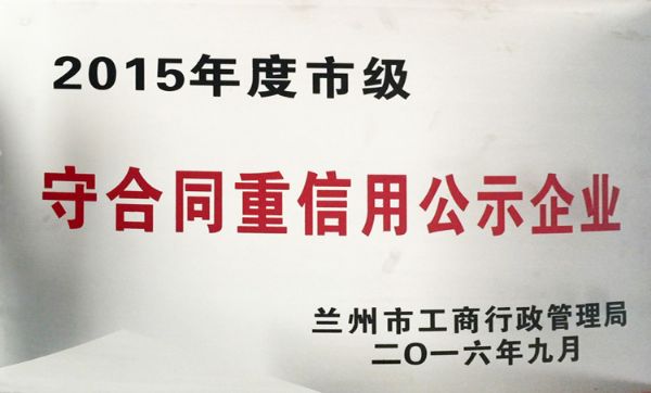 2015年度市級守合同重信用公示企業