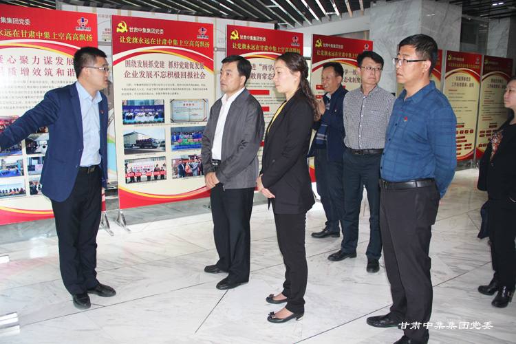 2017年9月27日下午,蘭州市委常委、組織部部長李宏亞一行在區委常委、組織部部長賈向紅、副部長楊顯輝、安寧區非公黨委副書記何健興、劉家堡街道負責人陪同下蒞臨公司調研指導黨建工作,集團公司黨委副書記、董事長助理董廣科、黨委委員魏建峰、安 康陪同調研。