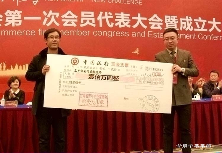 同時,甘肅省青年企業家商會副會長、甘肅中集實業集團董事長周啟濤代表甘肅省青年企業家商會現場向東鄉族自治縣捐贈100萬元,用于建造東鄉縣石家溝村幼兒園。