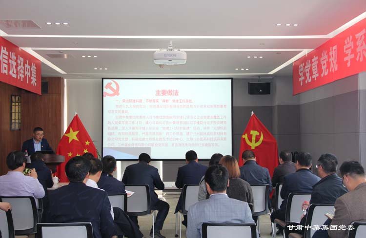 觀摩團一行首先聽取了甘肅中集集團公司的基本情況及集團公司黨委黨建的基本情況,隨后實地參觀了集團公司黨委黨員活動室、黨員會議室,問詢了企業黨建工作現狀和“三會一課”開展情況,并通過聽取匯報工作、翻閱資料等方式了解了集團黨委及各支部黨建工作。