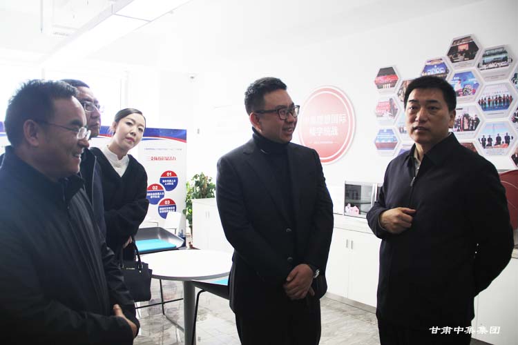 2019年11月12日上午,甘肅省委統戰部副部長萬澤剛,在省委統戰部六處處長張樹杰、省委統戰部六處干部張  強、蘭州市委統戰部常務副部長朱宗誠、市委統戰部六科科長馬志敏、安寧區區委常委、區委統戰部部長、區委辦公室主任鞠  康、區委統戰部常務副部長崔  虎、區委統戰部副部長李宜薷的陪同下,對安寧區新的社會階層人士聯誼會及中集理想國際寫字樓樓宇統戰工作開展情況進行專題調研。安寧區新的社會階層人士聯誼會會長、甘肅中集實業集團有限公司黨委書記、董事長周啟濤向萬澤剛一行詳細匯報了安寧區新聯會及中集理想國際寫字樓樓宇統戰工作開展情況。