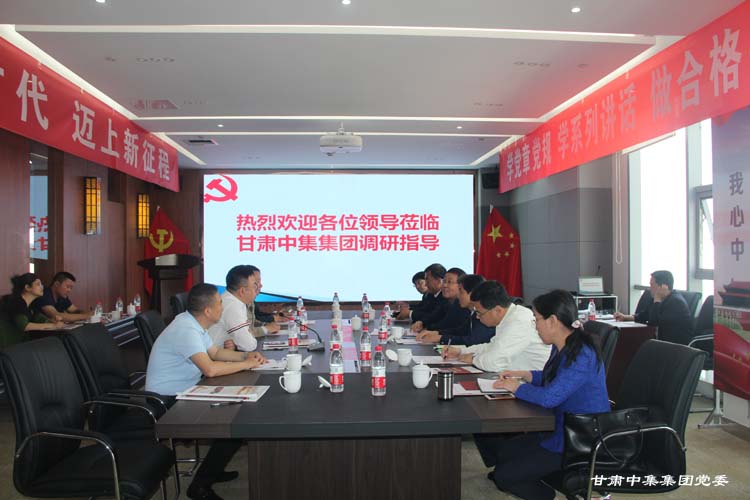 2019年5月21日上午,山西省非公經濟組織和社會組織工委副書記、市場監管局黨組成員、副局長王國強,山西省市場監管局非公黨建處處長朱志東一行6人,在省委非公經濟組織和社會組織黨工委副書記、甘肅省市場監管局黨組成員、副局長肖建勝,甘肅省市場監管局非公經濟組織黨建工作處處長劉玉圣,蘭州市市場監督管理局黨組成員、副局長李繼軍,安寧區市場監督管理局黨組成員、副局長蘇潤彬陪同下蒞臨集團黨委調研非公企業黨建工作,集團公司黨委書記、董事長周啟濤攜集團公司黨委委員向參觀調研組匯報企業黨建工作。