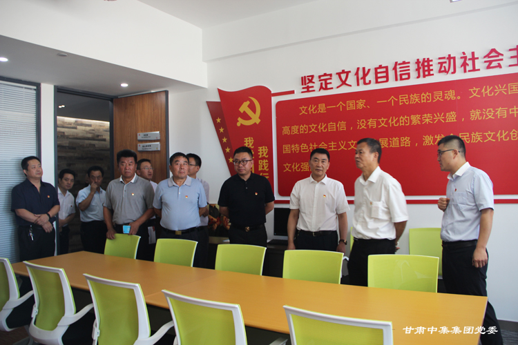 調研組一行首先參觀了集團公司黨委宣傳陣地、黨員活動室、談心談話室、閱覽室、健身中心等,通過查看黨支部建設標準化資料、聽取專題工作匯報和現場交談后,韓 旭副局長對甘肅中集集團黨委創新工作思路給予充分肯定,重點對黨支部建設標準化、樓宇黨建工作特色和亮點,特別是集團公司黨委開辟了非公經濟組織黨建工作的新路子、在開展 “三崗聯創”、“三亮”、“立足崗位做貢獻”等活動中取得優異成績給予充分肯定。他強調:“甘肅中集集團黨委黨建工作抓住了非公企業黨建存在問題的關鍵,充分發揮了黨組織的政治優勢和組織優勢,通過黨員隊伍建設和加強組織力,提高了企業經營管理水平,黨建各項工作求真務實,開拓創新”。他現場向西北五省、市非公黨建負責人強調:“要以此次觀摩為契機,認真學習借鑒甘肅中集集團黨委的成功經驗和做法,特別是把黨支部建設在樓宇、打造紅色紐帶工程和深入推進黨支部建設標準化、強化組織建設、創新活動方式、營造非公經濟組織黨建工作的濃厚氛圍、為提升樓宇總部經濟高質量發展提供堅強的政治保障和組織保障方面要大力學習和推廣。”