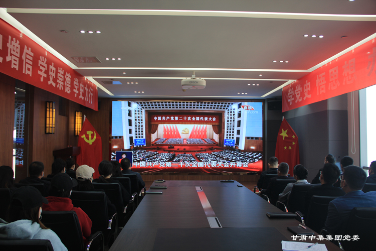 2022年10月16日上午,中國(guó)共產(chǎn)黨第二十次全國(guó)代表大會(huì)在北京人民大會(huì)堂隆重開幕。甘肅中集實(shí)業(yè)集團(tuán)有限公司黨委書記、董事長(zhǎng)周啟濤帶領(lǐng)集團(tuán)黨委委員與全體黨員、入黨積極分子、中高層管理人員共同觀看黨的二十大開幕盛況,聆聽黨的二十大報(bào)告。收看現(xiàn)場(chǎng)掌聲陣陣,氣氛莊重?zé)崃摇?nbsp;