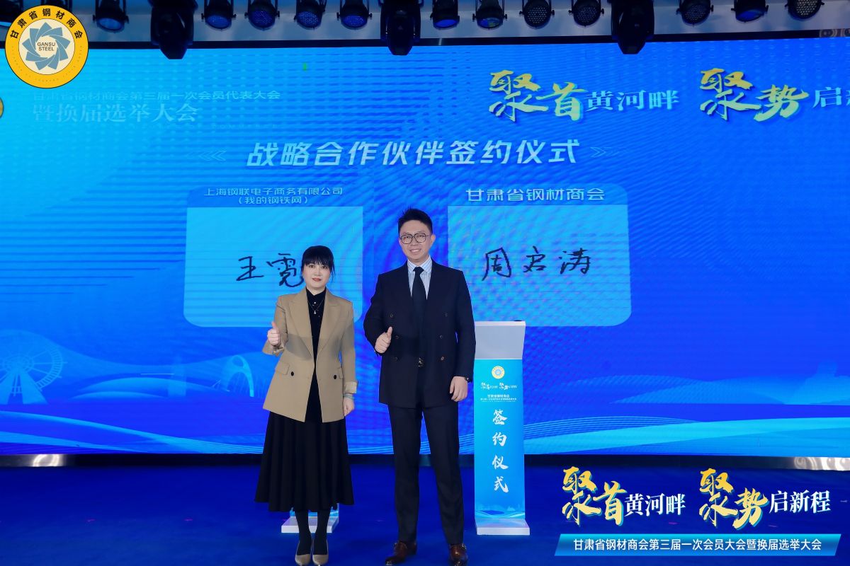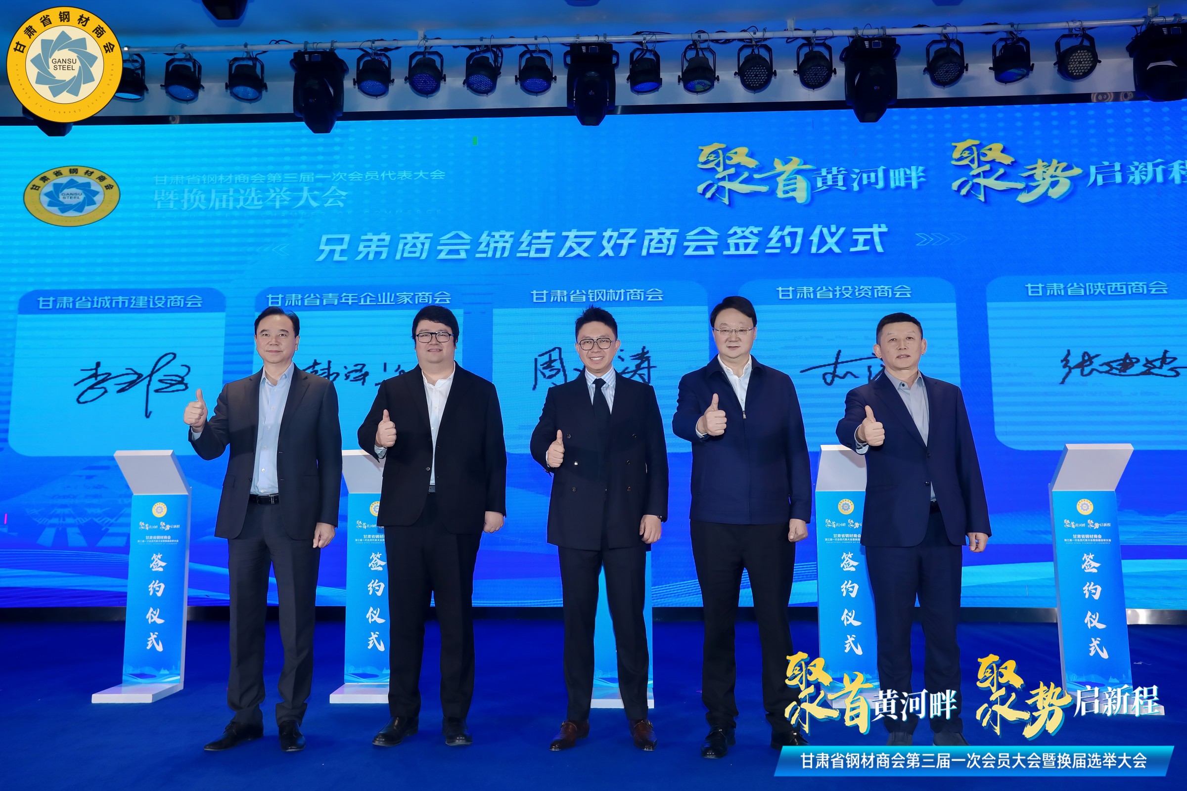 在合作交流環節,甘肅省鋼材商會分別與甘肅省陜西商會、甘肅省城市建設商會、甘肅省青年企業家商會、甘肅省投資商會舉行友好商會簽約儀式,并分別與上海鋼聯電子商務有限公司(我的鋼鐵網)達成戰略合作協議,并與蘭州銀行成功簽訂50億元授信協議,為甘肅省鋼材商會及會員發展提供資金、平臺、戰略合作的多方支持。