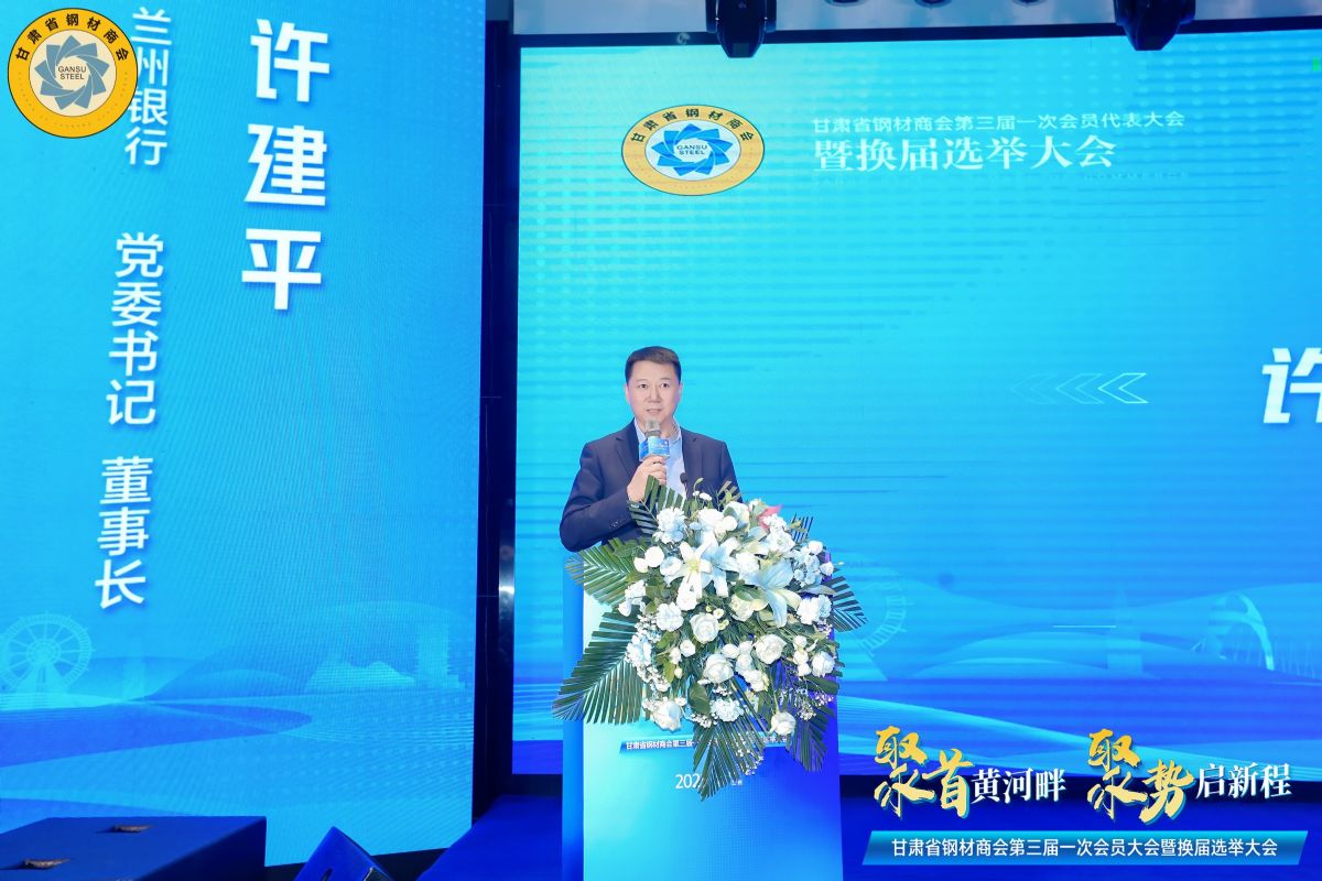 省委統戰部副部長、省工商聯黨組書記劉全平、省工商聯副主席、省總商會黨委書記朵雪青,省民政廳、省工商聯相關負責人,蘭州銀行黨委書記、董事長許建平、浙商銀行蘭州分行黨委書記、行長張 禹以及蘭州銀行、浙商銀行、中國銀行、甘肅銀行、甘肅省農村信用社聯合社等金融機構相關負責人,酒鋼、寧鋼、包鋼、八鋼等鋼廠業務負責人,上海鋼聯、蘭格集團等鋼材貿易平臺機構負責人,甘肅省青年企業家商會、甘肅省城市建設商會、甘肅省投資商會、甘肅省陜西商會、甘肅省湖南商會、長江商學院甘青寧校友會等商會會長、會員代表和甘肅省鋼材商會會員200余人參加大會。