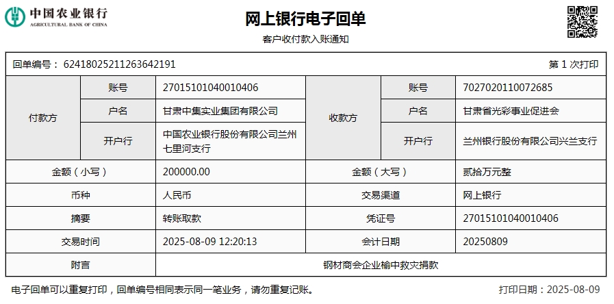 災情發生后,甘肅中集集團迅速啟動應急響應機制,通過甘肅省光彩事業促進會捐贈20萬元,助力榆中縣災害救援及災后重建工作,幫助災區早日恢復生產生活秩序。